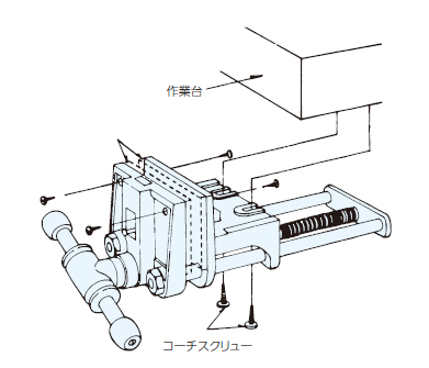 作業台の裏面からコーチスクリュー又はボルトで完全に固定して下さい。(HW175、HW150)