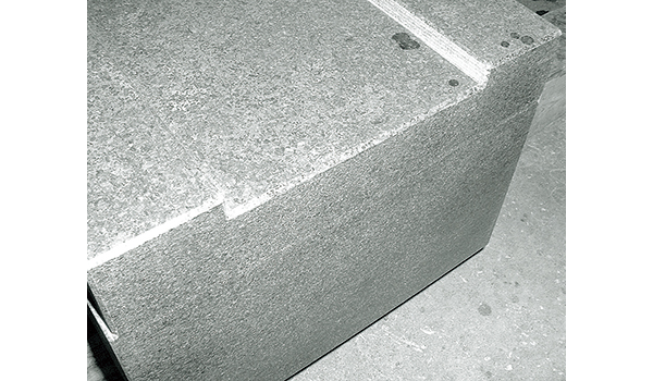 石定盤は天然石を使用し、6面加工されたうちの上面(基準平面)を研削、磨きによって平面度を確保しています。