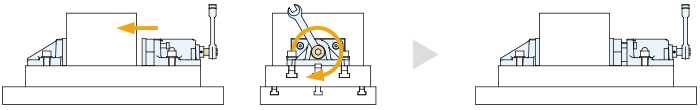 本体のハンドルを回すことで、スライドが水平方向に張り出してクランプします。