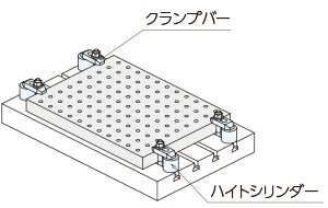 取り付けに必要なTスロットナット、スタッドボルト、フランジナット、クランプバー、ハイトシリンダー等のクランピングパーツは別売りです。