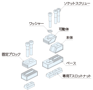 ■T溝タイプは専用Tスロットナットでクランプのすべりを防ぎます。