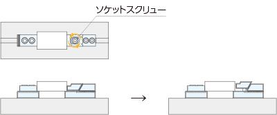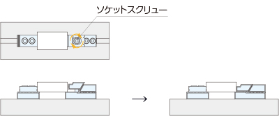 可動体のソケットスクリューを締め付けることで、クランプします。
