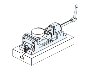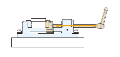 ハンドルを引き上げ、可動体をワークに当て、ハンドルを放すことでワークがクランプされます。