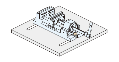 ボール盤のテーブルにユニレバーアクションバイスを設置し、ボルト・ナットで固定してください。