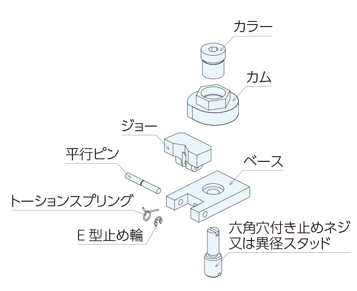 • ③カムをスパナで回すことでワークをクランプ・アンクランプすることができます。