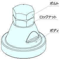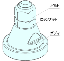 調整ができたら、ロックナットにスパナを当て、時計周りに回転させロックして下さい。このときボルト側が動かない様に固定して下さい。