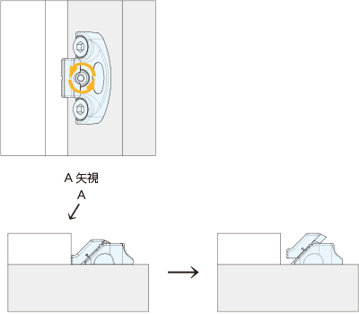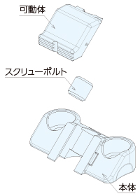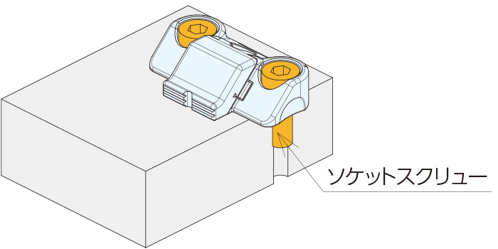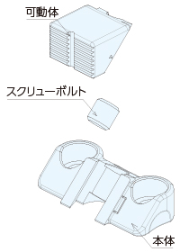 本体と可動体の間にあるスクリューを締め付けることで、クランプします。