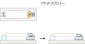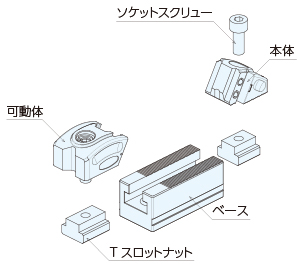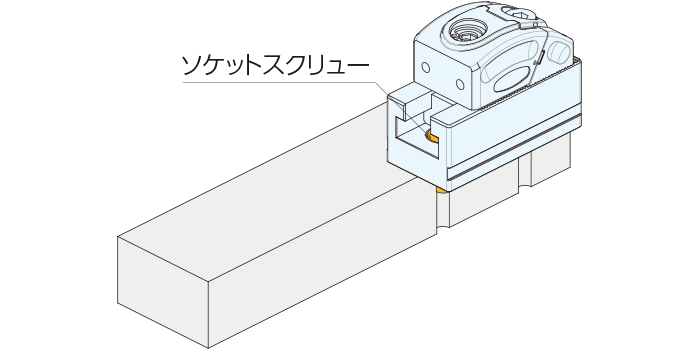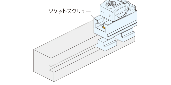 可動体のソケットスクリューを締め付けることで、クランプします。