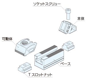 ベース、本体、可動体、Tスロットナット:黒染め(四三酸化鉄被膜)