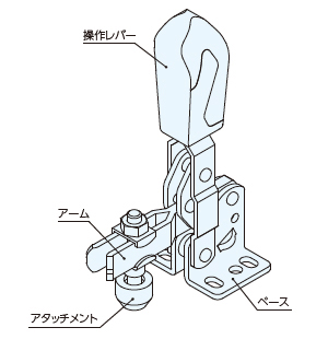 ・操作レバーを立ててクランプ、操作レバーを寝かせてアンクランプを行います。