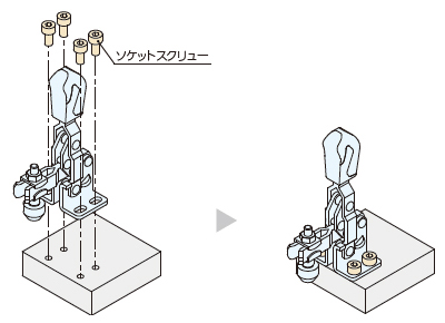 プレートにソケットスクリューでトグルクランプを取り付けます。