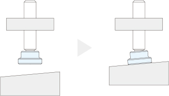 傾斜面のワークに対して、あたり面が倣って押さえます。