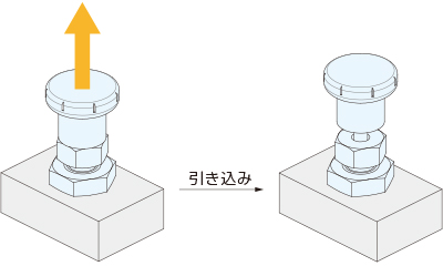 引いたノブを放すことで、ピンが飛び出します。
