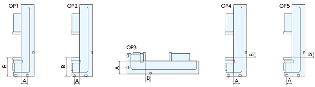 ご注文の際は、パターンの選択(OP1~OP5)、取り付けるT溝幅寸法、台数をご連絡ください。