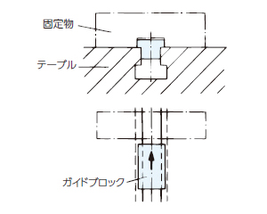 ■固定物を定位置に設定後、T溝にガイドブロックを入れることで位置決めができます。