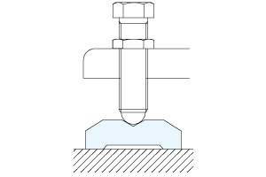 ボルトを搭載するV形状部の開き角度120°、寸法φ20のとき、ボルト先端の球面はSR18 まで使用可能です。
