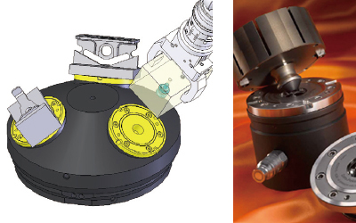 ワークをロボットで自動交換。