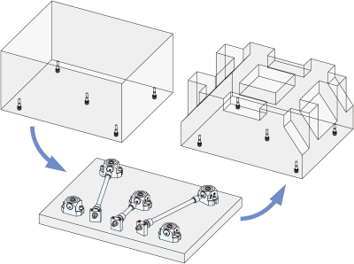 ピンボルトと本体のピッチを合わせるだけでワークを何度交換しても、同じ位置決め精度で簡単に固定が可能。
