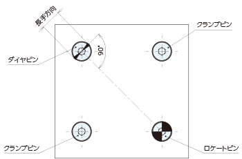 ダイヤピンの長手方向がロケートピンに対して垂直になるように取り付けてください