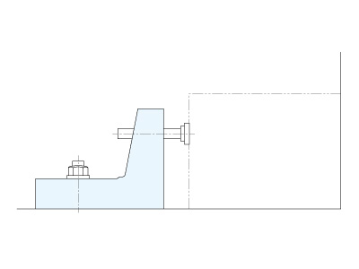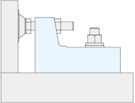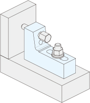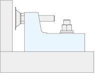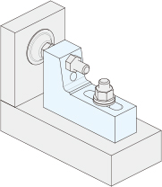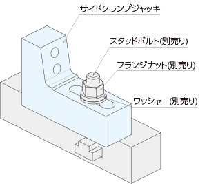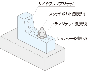 テーブルまたはジグベースにサイドクランプジャッキをセットします。スタッドボルト(別売り)・フランジナット(別売り)を取り付けてください。必要に応じてワッシャー(別売り)をご使用ください。