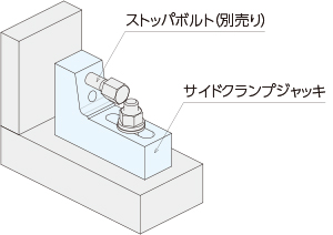 サイドのタップ穴にストッパボルト等を取り付けてワークに当てることで横からワークを押さえます。