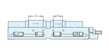■2個のワークを1つのバイスで同時にクランプでき、段取時間が短縮できます。