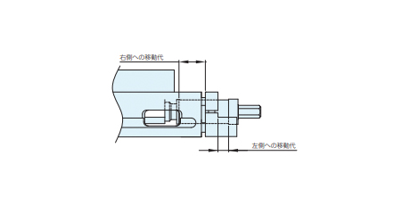 よって、ハンドルを右側とすると左右の可動体の中心を、左に13mm、右に33mm移動させることができます。