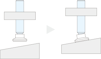■スラストパッド(SGB)ご使用の場合、約15°までフレキシブルに回転し、傾斜面でも確実にクランプします。