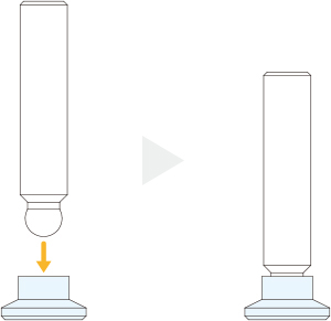 傾斜面のワークに対して、あたり面が倣って押さえます。