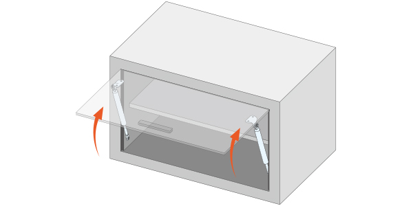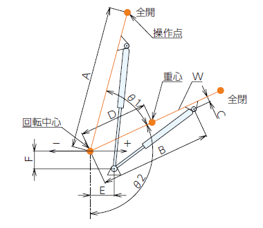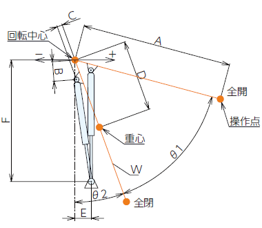 扉の位置や寸法等を入力することで、最適なガススプリングを絞り込むことができます。