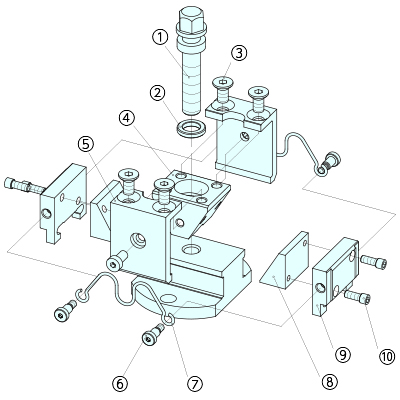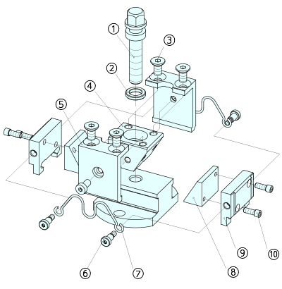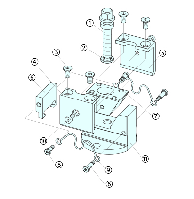 ■本体上部に飛び出たスピンドル上部の六角部を操作してクランプ・アンクランプを行います。