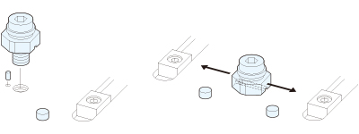 締付ボルトを六角レンチで締めることにより、本体のゴム部が伸び、金属部にてクランプします。