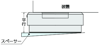 床の状態が悪い場合は設置する床と設置が平行になるように本製品の下にスペーサーを敷きます。