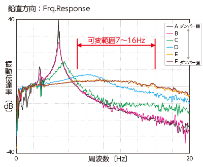 以下特性グラフ:A~Fが示す7~16Hzの範囲内で調整が可能です。