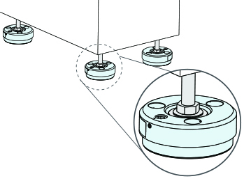 もし接触するタイミング(本製品の沈み込みのタイミング)がばらつくとカバーとベースにズレが発生し除振防振効果が得られない場合があります。その場合は再度設備を持ち上げ、作業のやり直しを行ってください。