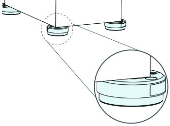 設備の支持物がフットジャッキの場合は、本製品が平行に沈み込むように本製品の凹部の中心を一致させてください。