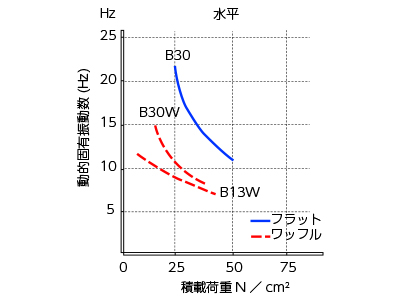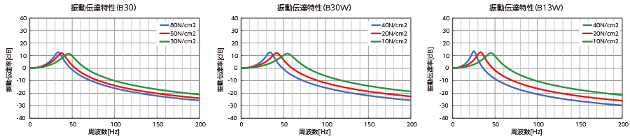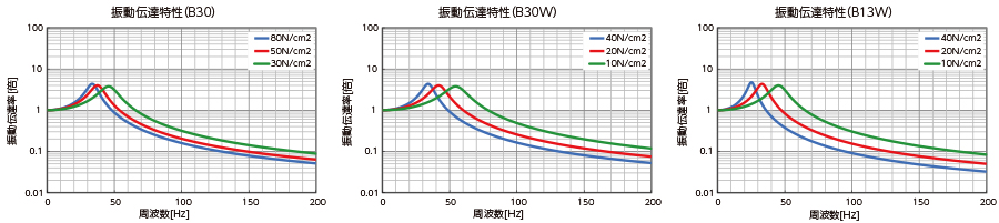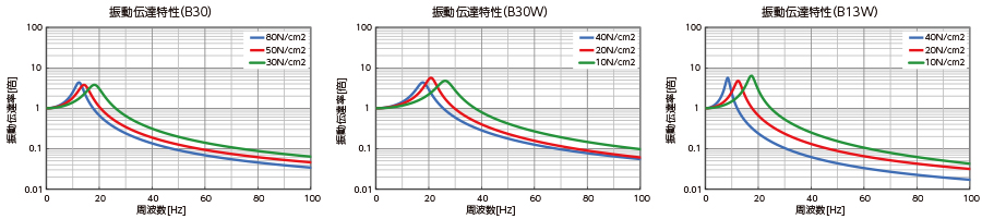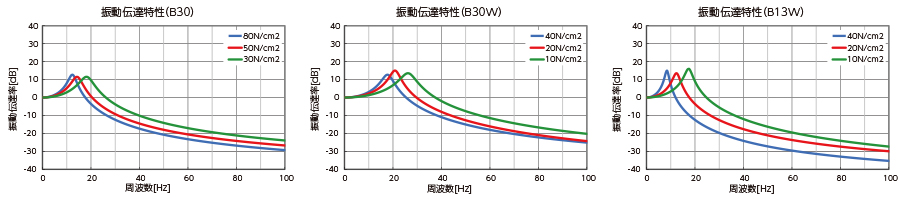 柔らかいタイプの製品です。比較的荷重の少ないプレス機、パンチング機、建物上階での使用に適します。