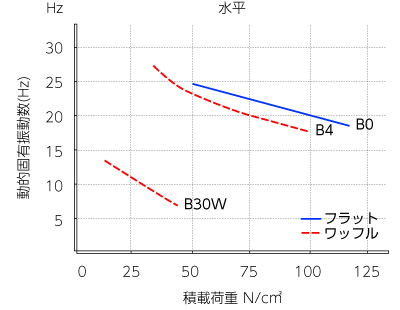 各型式の振動特性は防振プレートB0、B4、B30W(下図)を参照ください。