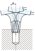 • 上部の芯ズレにより刃先が振動し加工します。