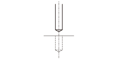 そのため、ボール盤のようにワークが静止している状態で機械を回転させた時の刃物動作は、円錐形状を描きます。