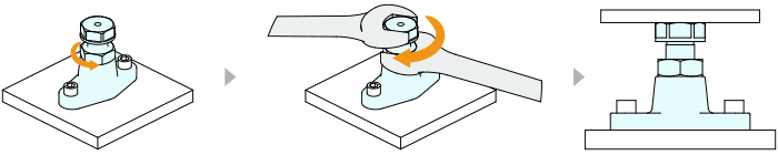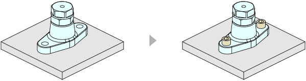 ワークの設置に伴う衝撃や垂直面の取付作業時にジャッキが転倒・脱落しないようにフランジ部をボルトで固定できます。