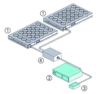 隣合う磁極は異なる磁性ですので、N極とS極が出来るだけ同数接するようにワークをバランス良く設置してください。