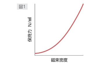 単位面積当たりの吸着力は、磁束密度の増加量に対して2乗で増加します。