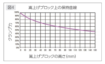 加工ワーク、もしくは嵩上げブロックの材質によって吸着効率を考慮してください。(図5)