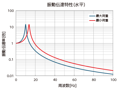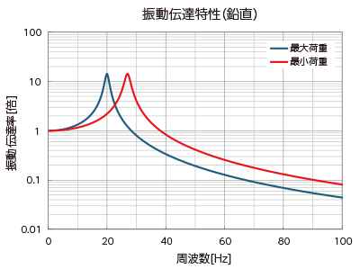 振動周波数がマウントの固有振動数の√2倍以下の場合には、振動が増幅します。