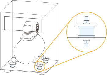 装置内にあるモーターやコンプレッサーなど振動を発生させる機器に組み込むことことができるため、装置及び装置外に伝わる振動を減衰します。