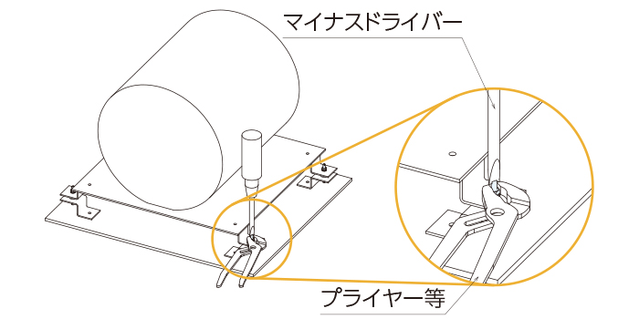 ・金具を固定する際、防振パッドをプライヤなどでつかまないように注意してください。