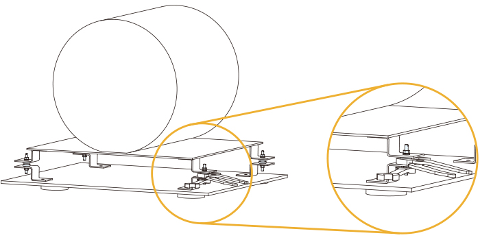 本製品を振動発生源/振動を嫌う装置と取付ベースとの間に挟んで使用します。