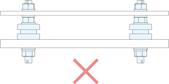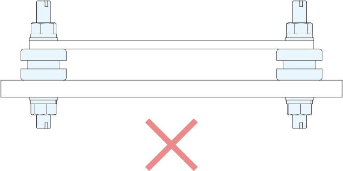 ・防振パッドがねじれないように、プライヤなどで金具を固定してナットを締めてください。