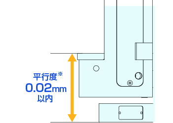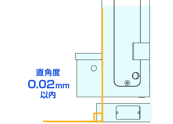 機械テーブル面に対するバイスの摺動面の直角度0.02mm以内。